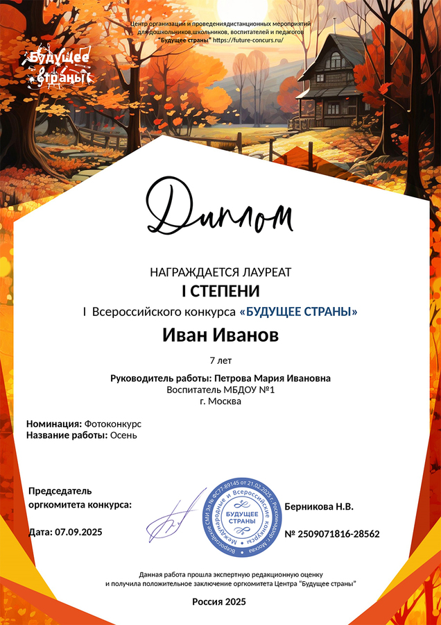 Вовремя не прошла оценка? Напишите на concurs@future-concurs.ru - Образцы дипломов